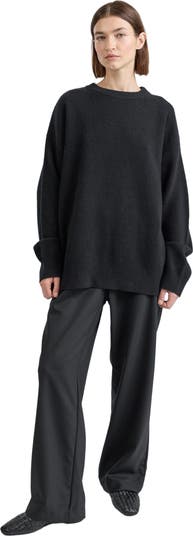 The most luxurious and softest oversized wool cashmere crewneck sweater. The dropped shoulders and rounded stuffed crew neck line detail gives a cool modern effect. There is also an extra layer of detail with wide ribbings on the sleeves and hemlines. The warmth and coziness of this sweater is something you will want to wear all winter long.