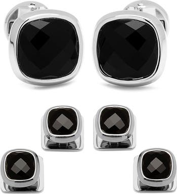 Dial up your formal look with this set of sleek cuff links and matching shirt studs featuring smart onyx inlays.