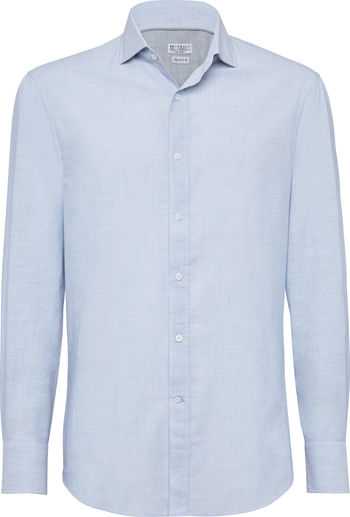 - Placket closure with mother of pearl buttonsSpread collarCuffs have two mother of pearl buttonsSlim fit