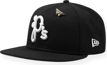 An embroidered logo adds signature branding to a fitted cap finished with a flat brim with contrasting colors for eye-catching style.