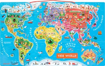 Country names and world geography bring with them discoveries about important landmarks and regional plants and animals in this magnetic world map that's almost three-feet wide. The 92 magnets are color-coded by continent and region for easy matching to their locations on the map, and the educational illustrations and fascinating details will keep will keep your child endlessly engaged.