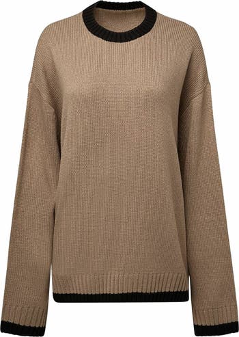 - This oversized crewneck sweater is designed for a loose fit with thick ribbing detailing the cuffs and hem. Oversized fit Large rib cuff and hem finishing 100% Acrylic Hand wash with cool water. Do not bleach. Do not tumble dry. Hang to dry. Do not iron.