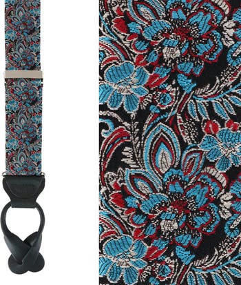 Elevate your style with the Enzo Exploded Floral Silk Button End Braces. These exquisite suspenders are crafted from premium silk, offering a luxurious feel and a sophisticated touch to any outfit. Hand-crafted in the United States, the exploded floral pattern, with its vibrant blooms and rich colors, adds a distinctive flair that is perfect for making a statement at formal events or adding a touch of elegance to your everyday attire. Featuring sturdy button-end attachments, these braces are designed to be both stylish and practical. The adjustable straps ensure a comfortable fit, while the silk fabric provides a refined sheen that enhances the overall look. Whether you are dressing up for a special occasion or simply looking to refine your wardrobe, these Enzo braces are the ideal accessory for those who appreciate quality and distinctive design. Braces are adjustable from 33 to 48 inches in length.