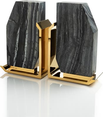 ANNA New York Fim Geo Marble Bookends, Main, color, Black Grey And Gold