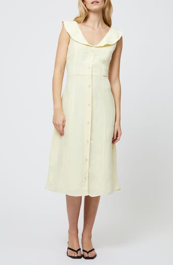Channel vintage-inspired charm in this button-front dress fashioned from a well-balanced linen blend with a rounded Peter Pan collar and discreet pockets.