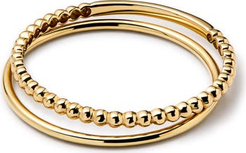 We noticed your stack was missing a gold band ring, or two. Crafted in solid gold, this set features two rings in varying textures. This sleek gold band and delicate beaded ring are destined to become your new favorite combo. Bring your look to completion by pairing this set with our Gold Classic Hoops for a timeless finishing touch. The Gold Bead Ring Set includes two pieces: Gold Band Ring - Gold Ring and Gold Band Ring - Gold Bead Ring.