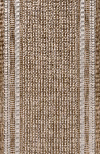 Our classic border rug has three wide stripes with a plain center field. It's woven from durable synthetic fibers in a two-tone design. Use this easy-care, family-friendly rug on the porch or deck, or in high traffic spaces like a living room, kids room or entry.