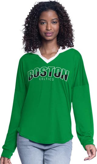 Embrace your Boston Celtics spirit in comfort with this G-III 4Her by Carl Banks Bench Player Oversized Long Sleeve Hooded Top. This oversized hooded top provides a relaxed fit, making it perfect for cheering on your favorite team on game day. A lightweight option, it's crafted from soft cotton and durable polyester and provides a trendy look for any Boston Celtics fan.
