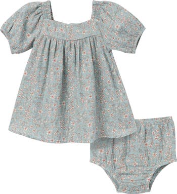 Dress your baby girl in this adorable set, perfect for sunny days! Made from 100% cotton, the lightweight gauze fabric is soft and breathable, ensuring comfort for sensitive skin. The ruffled dress bottom gives a cute, fashionable look, while the comfort-stretch waistband on the diaper cover offers flexibility and a snug fit. With stylish puffed sleeves, this baby dress blends charm and practicality, making it a must-have for her warm-weather wardrobe! Our essentials have been independently certified with STANDARD 100 by OEKO-TEX® so that you don’t have to worry about harmful substances in your baby’s wardrobe. Pack includes one dress with a matching diaper cover.