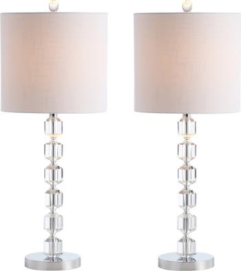 Cary 27.5" Modern Stacked Crystal/Metal LED Table Lamp, Chrome/Clear