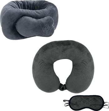 Travel Comfort & Relief Bundle - Memory Foam Travel Pillow with Sleep Mask + Portable Neck & Shoulder Adjustable Massaging Wrap
