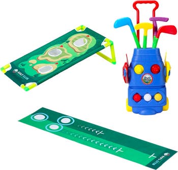 - This set combines the fun of cornhole and golf, featuring three scoring holes for pitching and a putting mat for driving the ball into the hole. Kids can enjoy dual activities, enhancing their skills and having fun.
