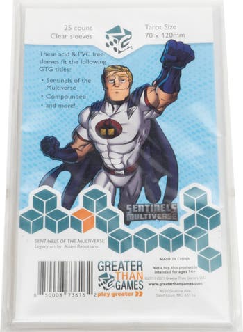 Greater Than Games Tarot Card Sleeves are the perfect protection for your beloved board and card games! Made of acid-free and PVC-free plastic, these 25 clear sleeves are designed to keep your cards safe and secure for years to come. The Tarot size 4.72" x 2.75" (120x70mm) makes them a perfect fit for cards throughout the Greater Than Games collection like Medium, and many other card and board games! No more worrying about your cards getting damaged from wear and tear or accidental spills. With Greater Than Games's Tarot Card Sleeves, you can enjoy your favorite board games with peace of mind, knowing that your cards are protected from harm. Includes 25 clear, tarot sized (120x70mm), card sleeves made from acid-free and PVC-free plastic to ensure maximum life of your favorite cards and card games.