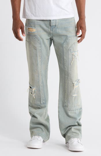 Nonstretch denim gives a crisp and sturdy feel to these casual bootcut jeans that boast carpenter-inspired front panels for a rugged utilitarian vibe.