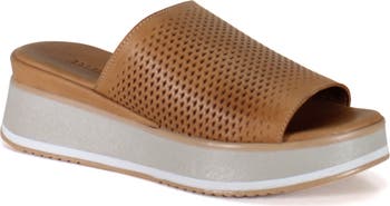 Slide into comfort with the PA CIFIC platform sandal by Diba True. This leather slip-on sandal has a 2-in heel and a round toe. Additionally, the perforated leather is a nice touch on a hot summer day.