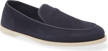 The padded and subtly stitched saddle nods to high end sports cars in this handcrafted leather loafer set on a blake-stitched rubber sole for lightweight comfort and flexibility.