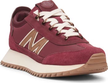 A monogram M races across the sidewall of a chunky, mixed-media sneaker set on a sporty sawtooth sole.