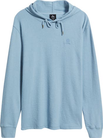 Low-key stitching brands the chest of this hoodie cut from cotton-blend interlock that makes a lightweight layer against the chill as it tries to creep in.