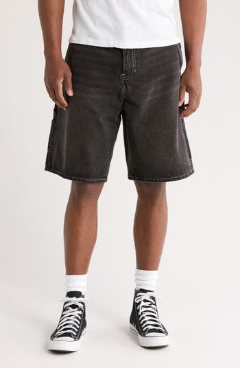 A long, baggy fit gives you room to move in these durable nonstretch-denim shorts outfitted with carpenter detailing and optic-white topstitching to boost the '90s vibe.