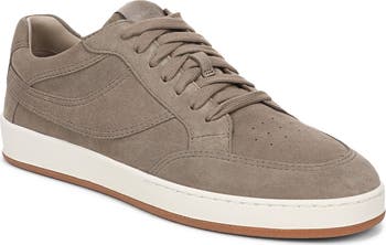 A monochrome leather upper adds to the easygoing vibe of this low-profile sneaker set on a rubber gum sole.