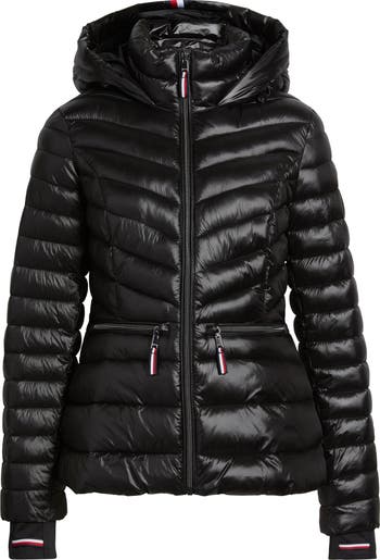 Directional quilting shapes the fitted silhouette of a staple puffer jacket that packs perfectly.