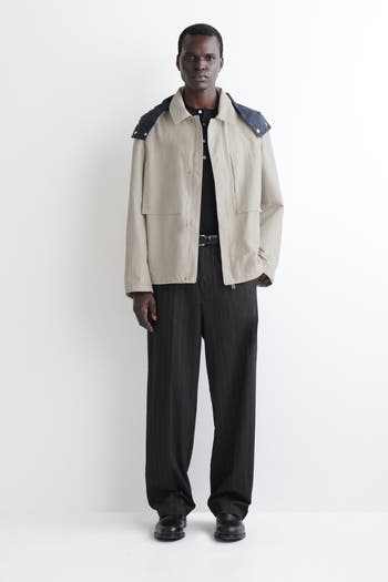 This technical jacket is an intuitive option for transitional styling. Made from a cotton and nylon blend, it's cut in a laid-back shape and designed with a packable hood that's hidden under the classic collar. It's finished with wide chest pockets and press-stud cuffs.