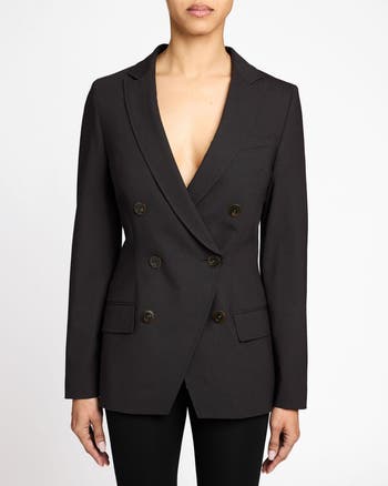 - Double-Breasted Six-Button Jacket in Virgin Wool Stretch