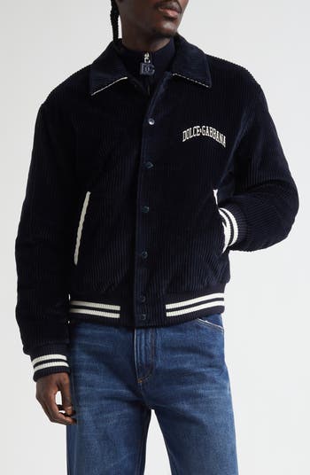 The Italian label turns fanwear into fashion with a varsity jacket rendered in velvety cotton corduroy that catches the light and underscores the sporty vibe. Inside, a quilted lining ups the warmth and ribbed trims keep the profile sharp.