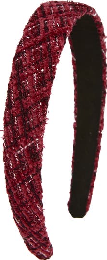 Transform your tresses into a chic statement with this padded headband fashioned from preppy tweed winked with twinkling metallic threads.