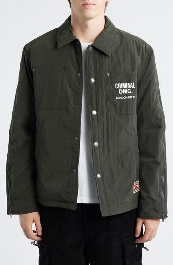 Zipper and logo embellishments amplify the suave street style of this lightly insulated nylon shirt.
