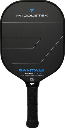 The Paddletek Bantam Esquire C 14.3 Pickleball Paddle offers a smooth blend of control, power, and spin for all-around players. Its 14.3mm Bantam core softens the feel on contact, giving you more forgiveness on off-center hits. The raw carbon fiber face adds extra spin and pop, while the extended 5.5 inch handle is great for two-handed shots. Lightweight and quick, it's built to handle both soft net play and powerful drives with ease. Sizing: Small=4, Medium=4 1/8, Large=4 1/4