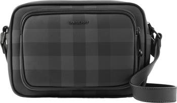 A crossbody bag woven with the Burberry Check and lined in a solid colour. The compact style is trimmed with smooth calf leather and features an adjustable strap.||Adjustable strap|Zip closure|Three card slots|Exterior zip pocket, exterior slip pocket with magnetic closure |Hand-painted edges |Metal hardware|Raised Burberry lettering at front|Lined