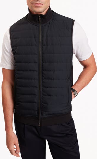 This lightweight hybrid vest is constructed with a quilted front and stretchy piqué-knit back panel, while a firm herringbone-stitch rib accents the neck and bottom edges. It's perfect for active pursuits or when you're out and about doing errands.