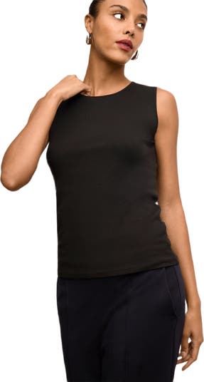 Made from super-soft, hand-picked Peruvian Pima cotton, this fine-ribbed, sleeveless tank features a high neckline and a tailored fit that makes it perfect for tucking.