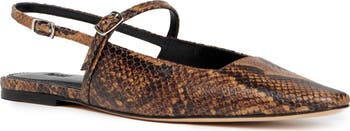 A squared-off top line and snip toe bring crisp angles to a slingback leather flat designed with micro mary jane strap for a retro addition.