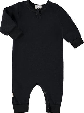 PAIGELAUREN Henley Sweatshirt Fleece Romper, Main, color, Black