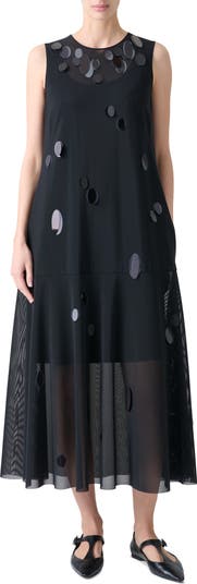 The brand's signature dot motif is translated into translucent paillettes randomly sized and placed across the front of this sleeveless midi tailored from techno tulle.