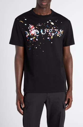 Seán McGirr salutes sartorial provocateur Lee McQueen with this haphazardly paint-splattered Italian-cotton T-shirt featuring a streamlined logo modeled after designs from the iconoclastic founder's sketches.