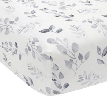 - A lovely watercolor leaf design in shades of gray decorates the 100% cotton fitted crib sheet