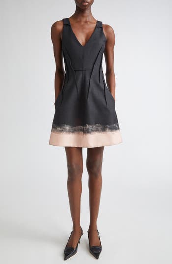 For his fall '25 collection, Wu continues to show his work, which sometimes appears to be elegantly incomplete, as with this fit-and-flare mini tailored with exposed seams and patterned almost all over in a classic glen plaid with a wide hemline made to look like primed, but still unpainted canvas.