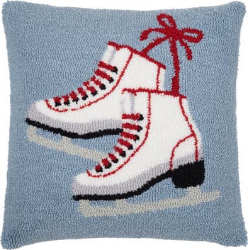 Pair Ice Skates on Gray Background Hooked Pillow Accent Pillow, 18" x 18"