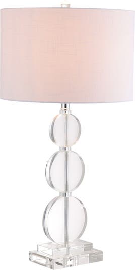 Modern yet timeless, this table lamp evokes the silhouette of a classic midcentury triple gourd lamp but in a traditional crystal material. At nearly 30" tall, you'll make a statement by adding a perfect pair on either side of a console or buffet, or use one to give your desk a designer touch with this updated take on a classic style. Crafted of a crystal base and finial, it's finished with a bright white drum shade.