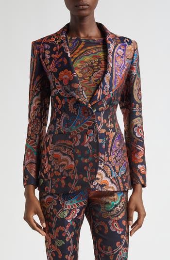 Get the '60s groove going in this single-breasted jacket featuring house-signature paisley swirls reinterpreted in jeweltone brocade.