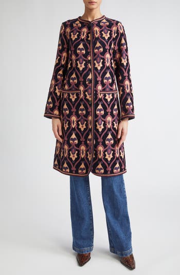Boho's back. Leading the pack, Etro serves up '70s nostalgia for pre-fall '25, delivering this maximalist jacket featuring house-signature paisley motifs arranged in a tapestry-like pattern complemented by tonal zigzag trim.