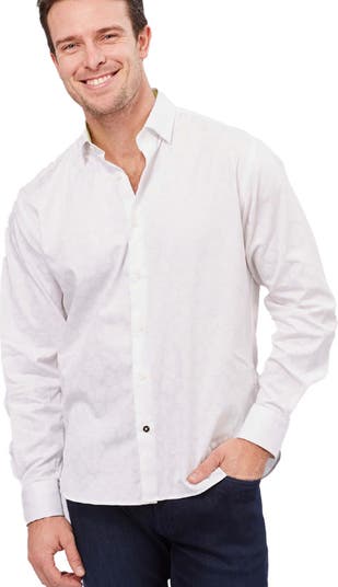 Long sleeve shirt in white paisley jacquard. Natural stretch.