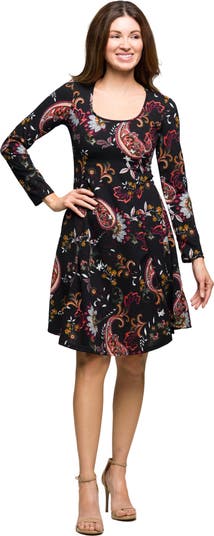 Make a statement with this black paisley print fit and flare dress that blends timeless charm with everyday ease. Designed with a flattering scoop neckline and long sleeves, it’s the perfect piece for cooler seasons. The fit and flare silhouette offers graceful movement, while the lively paisley pattern adds a bold pop of personality. Whether styled with flats for daywear or heels for the evening, this dress is a versatile choice for your wardrobe.