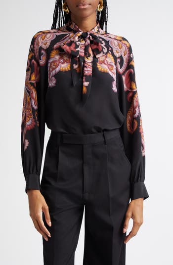 House-signature paisley and sweeping ties bring the label's '70s sensibility to this luxe crêpe de Chine top cut from fine Italian silk. Secure the ties in a prim bow or leave them undone for a laid-back look.
