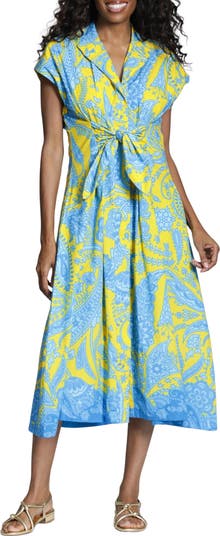 A classic paisley pattern makes a charming statement on this woven A-line dress complete with a front tie detail.