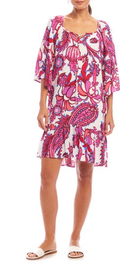 Swirling paisley and ornate blooms in a bold color palette draw the eye to this airy woven dress edged by ruffles for a twirl-worthy moment.
