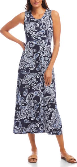 This simple and elegant paisley-print midi dress is cut from stretchy jersey in a figure-skimming sleeveless fit with an airy side slit for easy movement.